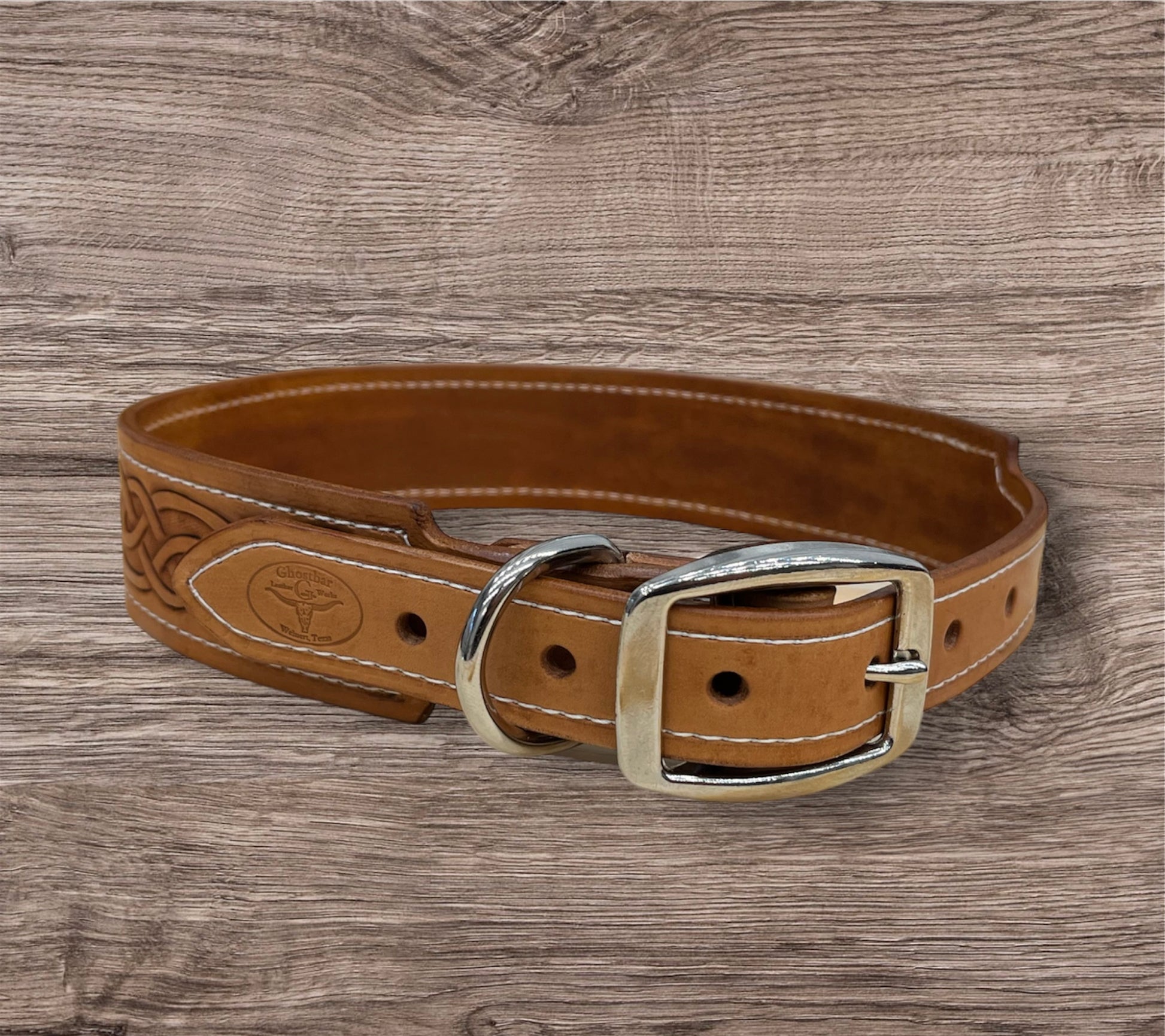 No two collars are exactly the same. Each piece is made specifically for your dog, with sizing, tooling, and details customized before production begins.